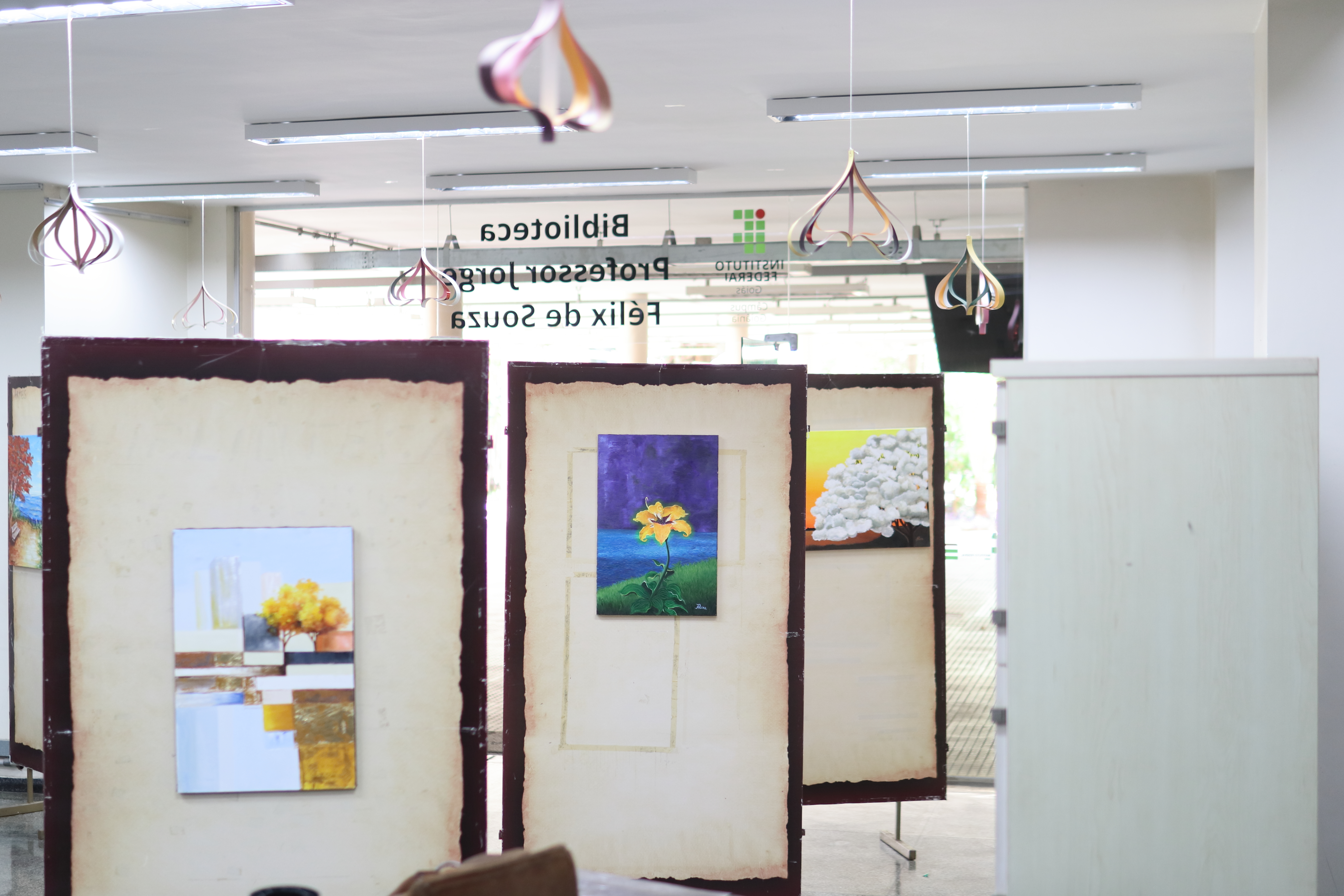 Exposição “Artes e Cores do Cerrado” na biblioteca do Câmpus Goiânia do IFG.