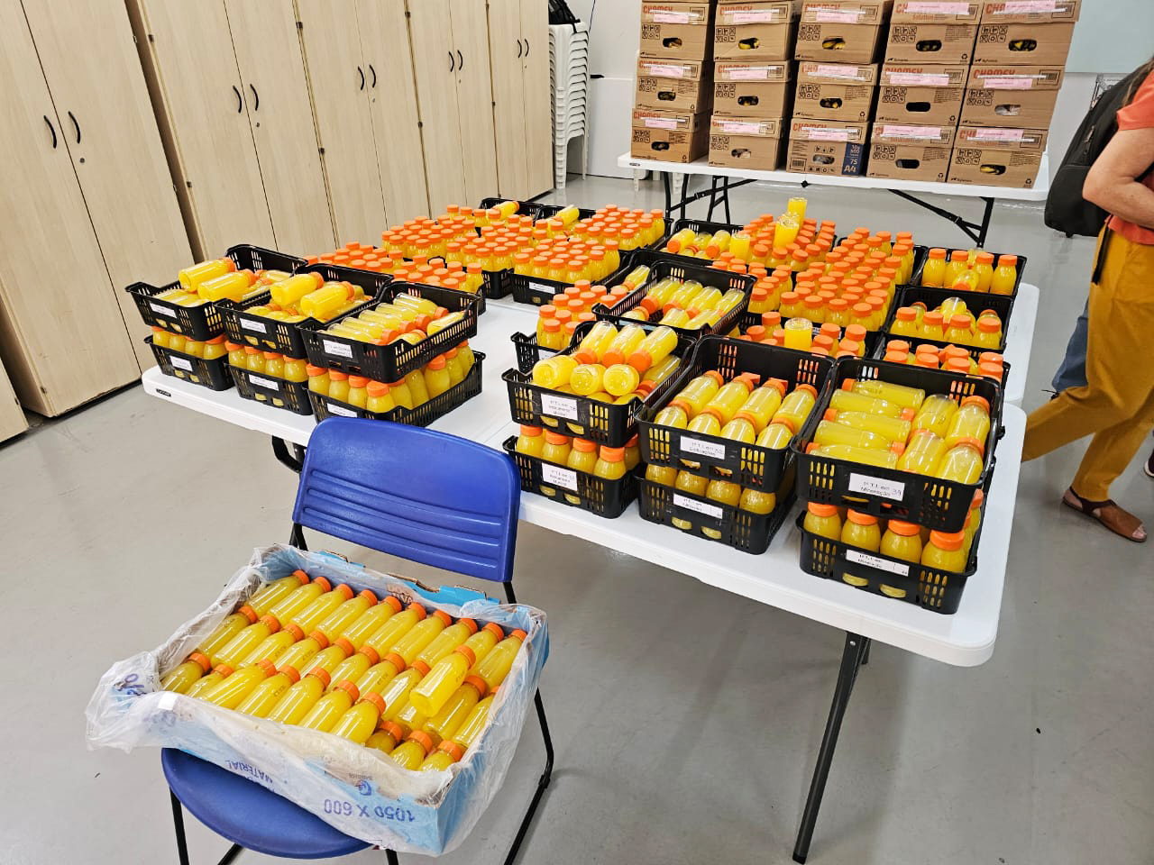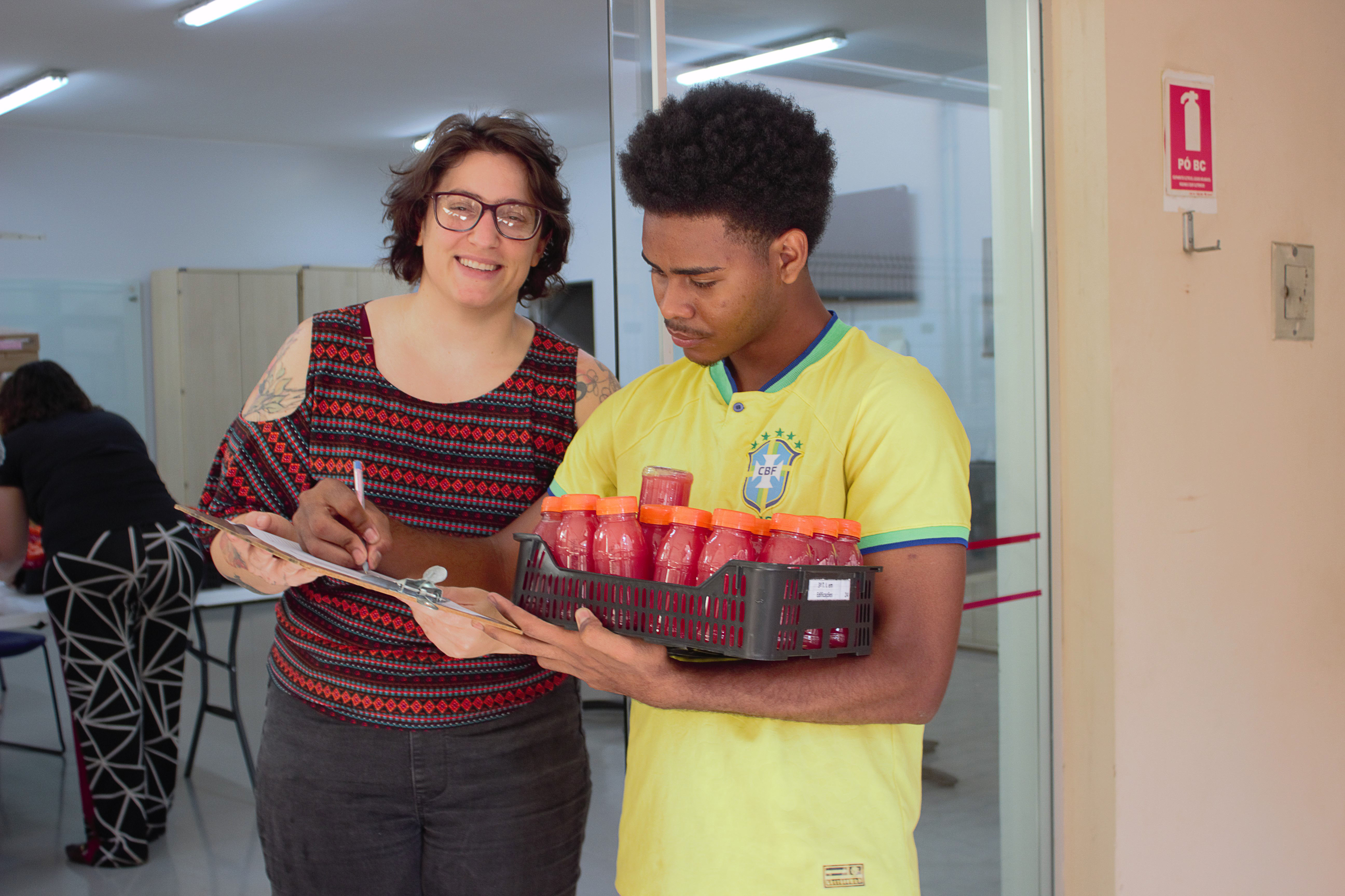 Os representantes estudantis dos cursos técnicos participam também da logística, retirando os kits no Laboratório Gastronômico e realizando a distribuição entre as turmas durante os intervalos das aulas.