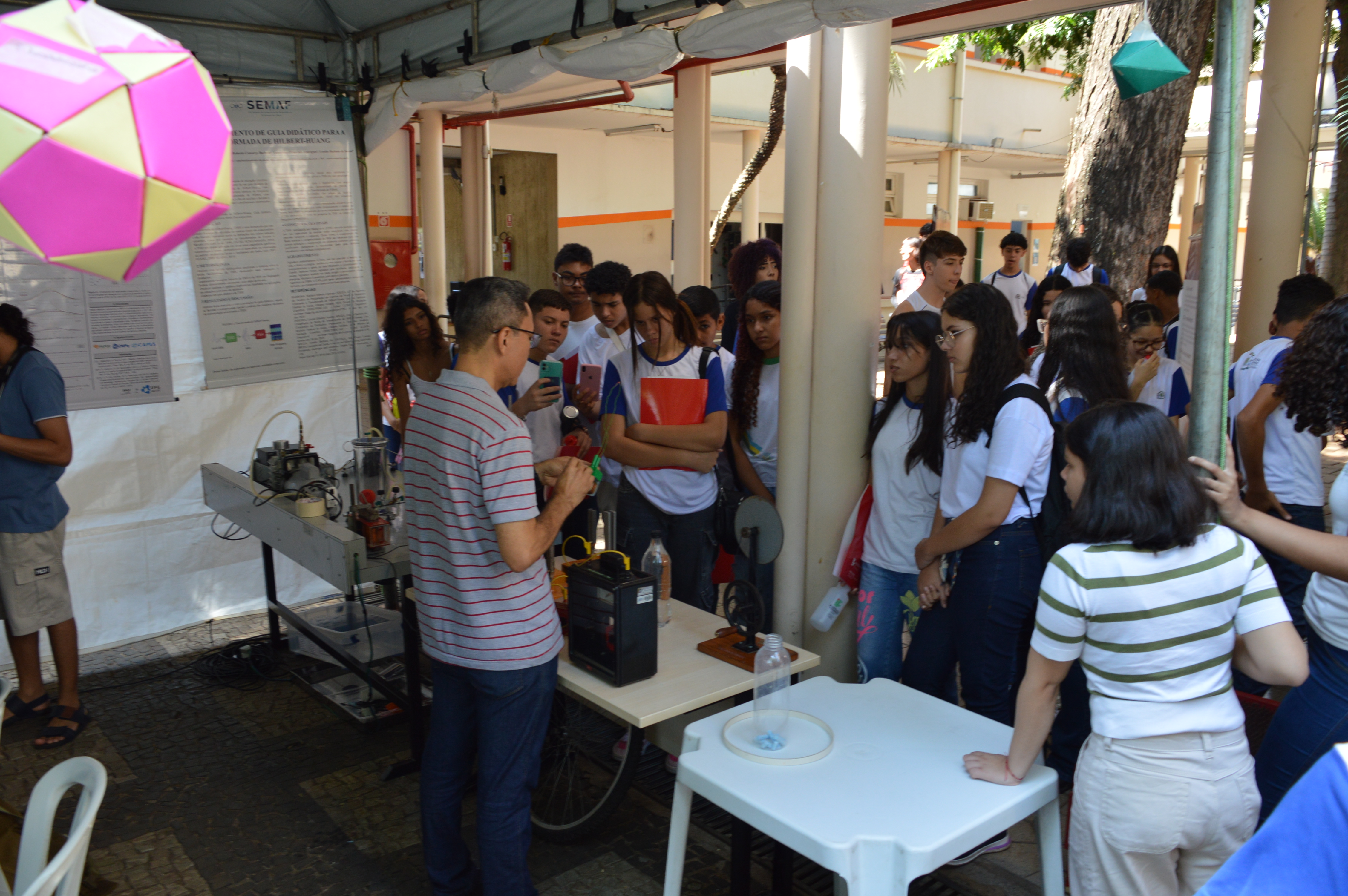 As tendas temáticas instaladas no pátio do câmpus funcionaram como laboratórios a céu aberto, com exposições de projetos, atividades didáticas e práticas lúdicas dos cursos ofertados na unidade. Com o IFG Truck , que se trata de um laboratório maker itinerante, foram apresentados projetos desenvolvidos com impressoras 3D.