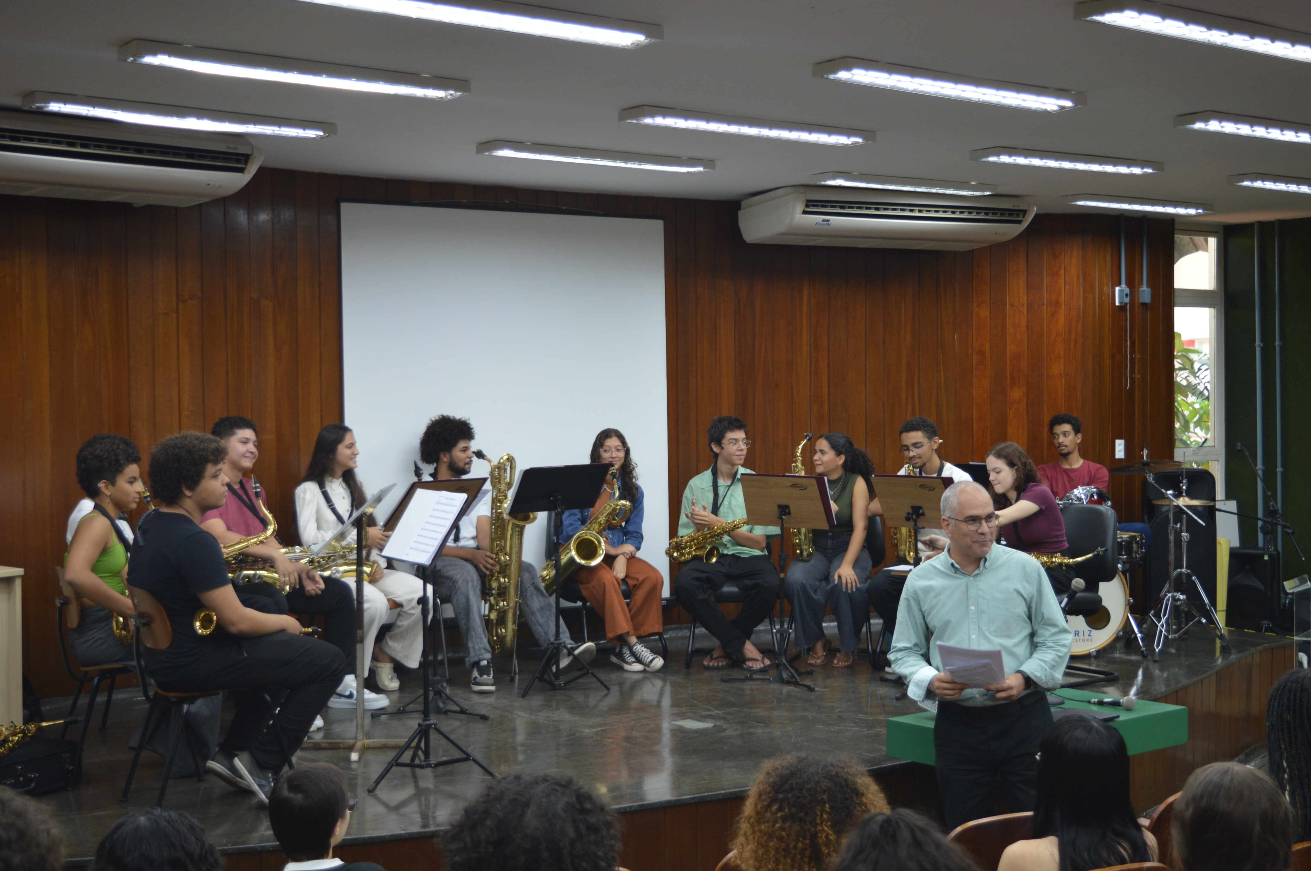Apresentação do Grupo de Saxofones do IFG durante a 2ª etapa da Secitec, no Câmpus Goiânia do IFG.
