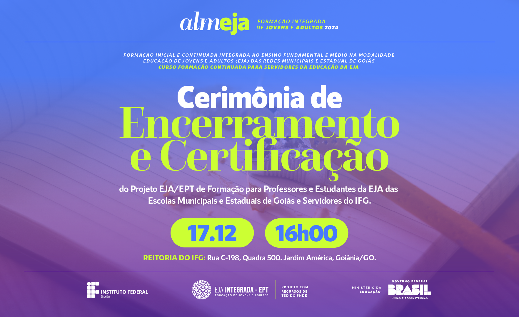 Solenidade de certificação dos alunos do Projeto EJA/EPT AlmEJA será realizada na próxima terça-feira, 17