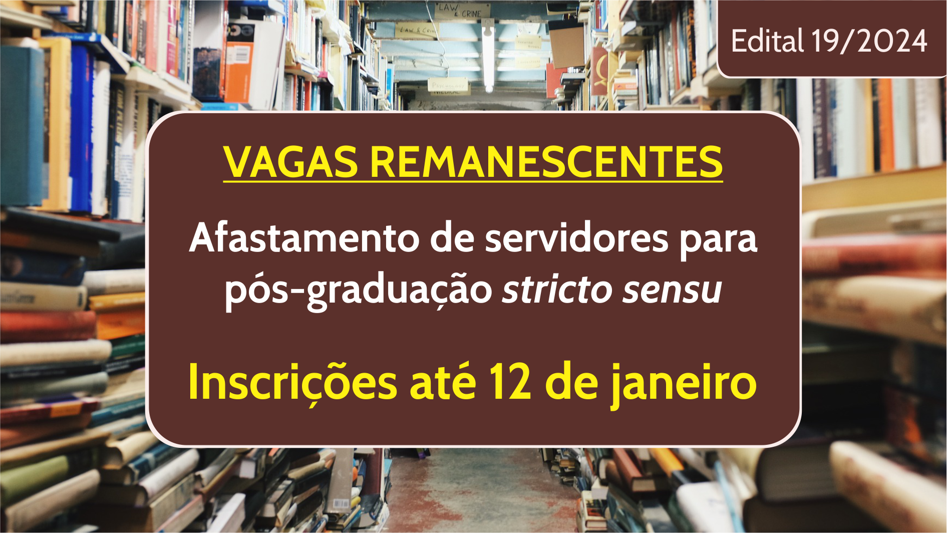 Publicado edital de vagas remanescentes para solicitação de afastamento de servidores para cursar pós-graduação