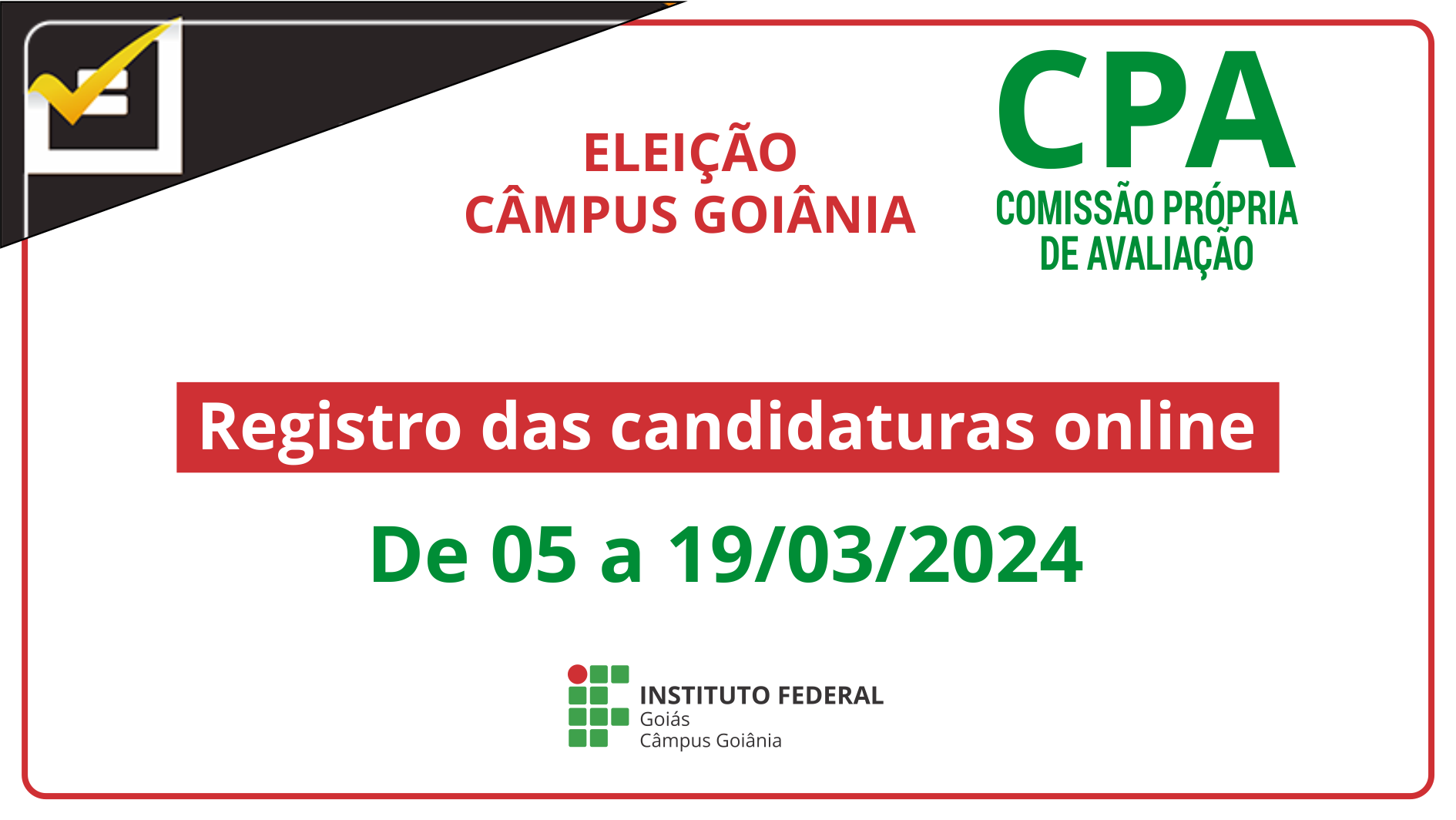 Professores, técnicos-administrativos e alunos do Câmpus Goiânia podem registrar candidaturas de 5 a 19 de março.
