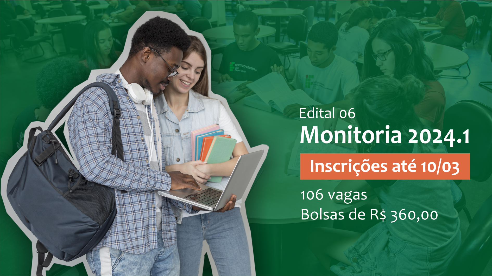 O valor mensal da bolsa é de R$ 360. Podem se inscrever no edital alunos dos cursos regulares e presenciais do câmpus