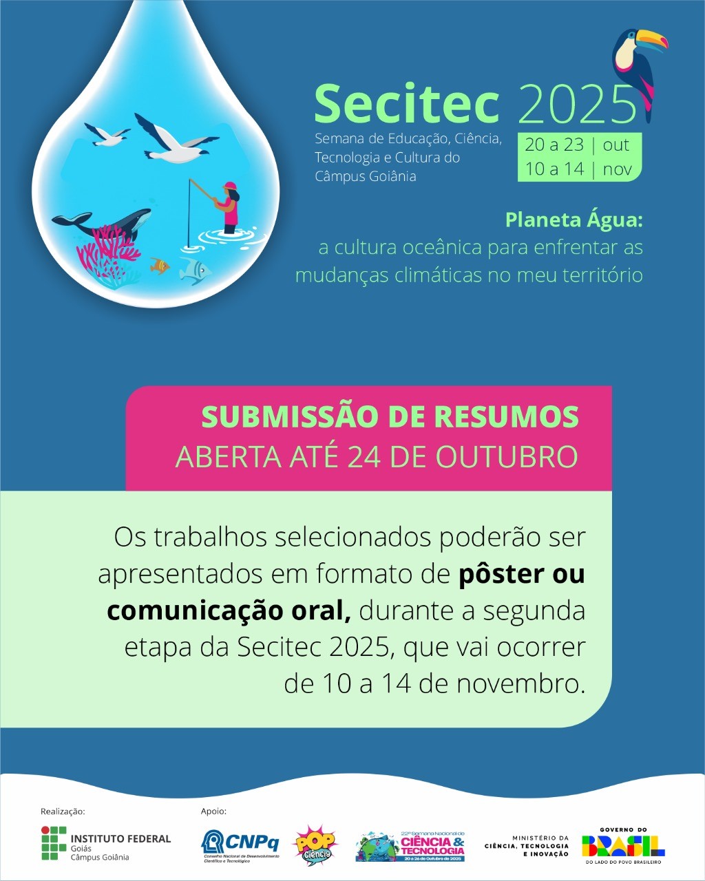 Chamada para submissão de trabalhos para Secitec 2025 - Câmpus Goiânia