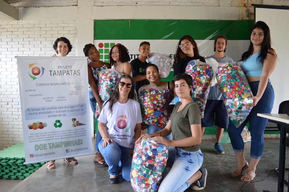A idealizadora do Projeto Tampatas, Regina Menezes, compareceu no IFG Câmpus Goiânia Oeste na quarta-feira, dia 28, para receber dos alunos e servidores quase dez sacos de tampinhas que foram coletadas nos últimos três meses no câmpus. O projeto Tampatas une a sustentabilidade e a preservação do meio ambiente com a responsabilidade social para arrecadar tampinhas plásticas que são vendidas em empresas de reciclagem e cujo valor é revertido para a castração de animais de rua ou carentes e o Câmpus Goiânia Oeste é um dos pontos de coleta do projeto.