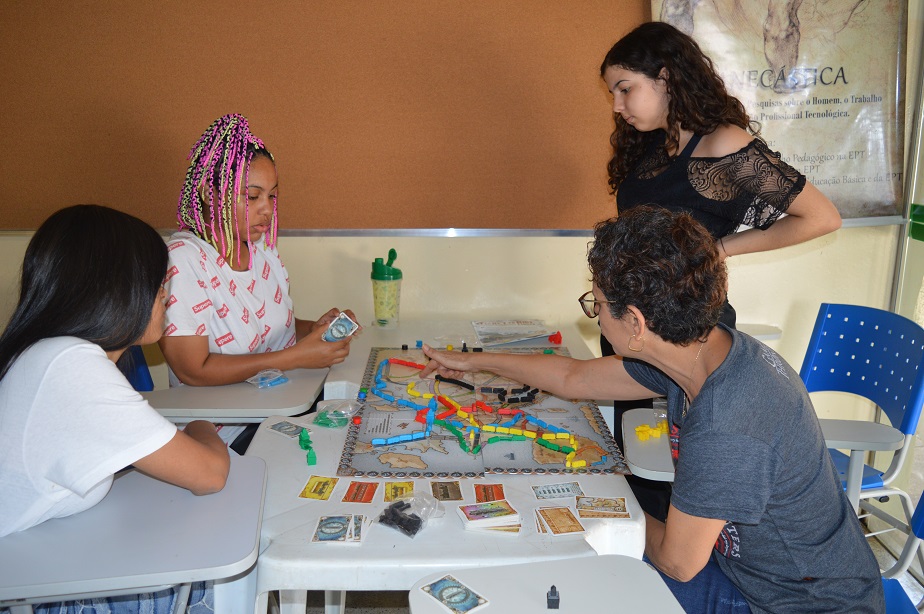 “Nós montamos no Câmpus Inhumas, como fruto do Projeto Fora das Redes, uma Ludoteca para qualificar o tempo livre dos alunos com jogos lúdicos, jogos analógicos de tabuleiro moderno, que desenvolvem o raciocínio e a interação. Por enquanto temos somente o projeto no Câmpus Inhumas, porém, alguns alunos daqui ficaram sabendo e tinham curiosidade de saber como funciona, porque eles não tem contato com esse tipo de jogos. Os alunos daqui nos procuraram e pediram para conhecer os jogos aí viemos a convite da CAE do IFG Câmpus Goiânia Oeste com o objetivo de trazer os jogos para apresentar para os alunos e quem sabe futuramente expandir o Projeto Fora das Redes”, explicou André Alexandre Antunes, psicólogo do IFG Câmpus Inhumas.