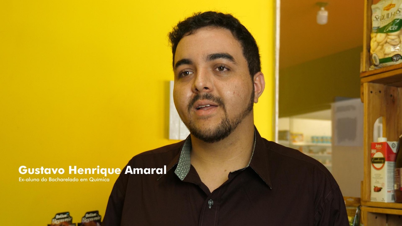 “Quando eu estudava no IFG, eu cursava técnico em Química, eu queria fazer pesquisa, buscar sempre novidade. Na época saiu um edital de uma competição voltado pra segurança alimentar. Aí nós começamos a desenvolver nos próprios laboratórios do IFG fórmulas que agradassem o paladar, como cookies. Passamos a remodelar o projeto e utilizar uma base de cacau com extrato vegetal, ao invés de utilizar a lactose. Acredito que se eu não tivesse estudado no IFG eu não tivesse essa inovação”, conta Gustavo Henrique Amaral, ex-aluno do bacharelado em Química.