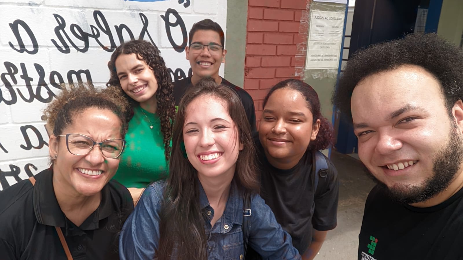 Na terça-feira, dia 22 de outubro, os servidores técnicos administrativos Aline de Moraes Rocha e Thiago Damasceno Pinto Milhomem, juntamente com os alunos Ana Luiza da Silva Gomes (2o ano do curso Técnico em Análises Clínicas), Marcos Vinicius Sousa (1o ano do curso Técnico em Vigilância em Saúde), Milena Torres Gomes (2o ano do curso Técnico em Nutrição e Dietética) e Vitória Gomide de Araújo (1o ano do curso Técnico em Vigilância em Saúde), visitaram a Escola João Alves de Queiroz para falar sobre o câmpus e os cursos ofertados no processo seletivo dos cursos Técnicos Integrados ao Ensino Médio 2025. A excepcional visita ocorreu para atender aos estudantes da escola que não iriam conseguir participar da visita a sede do Câmpus Goiânia Oeste no dia seguinte.