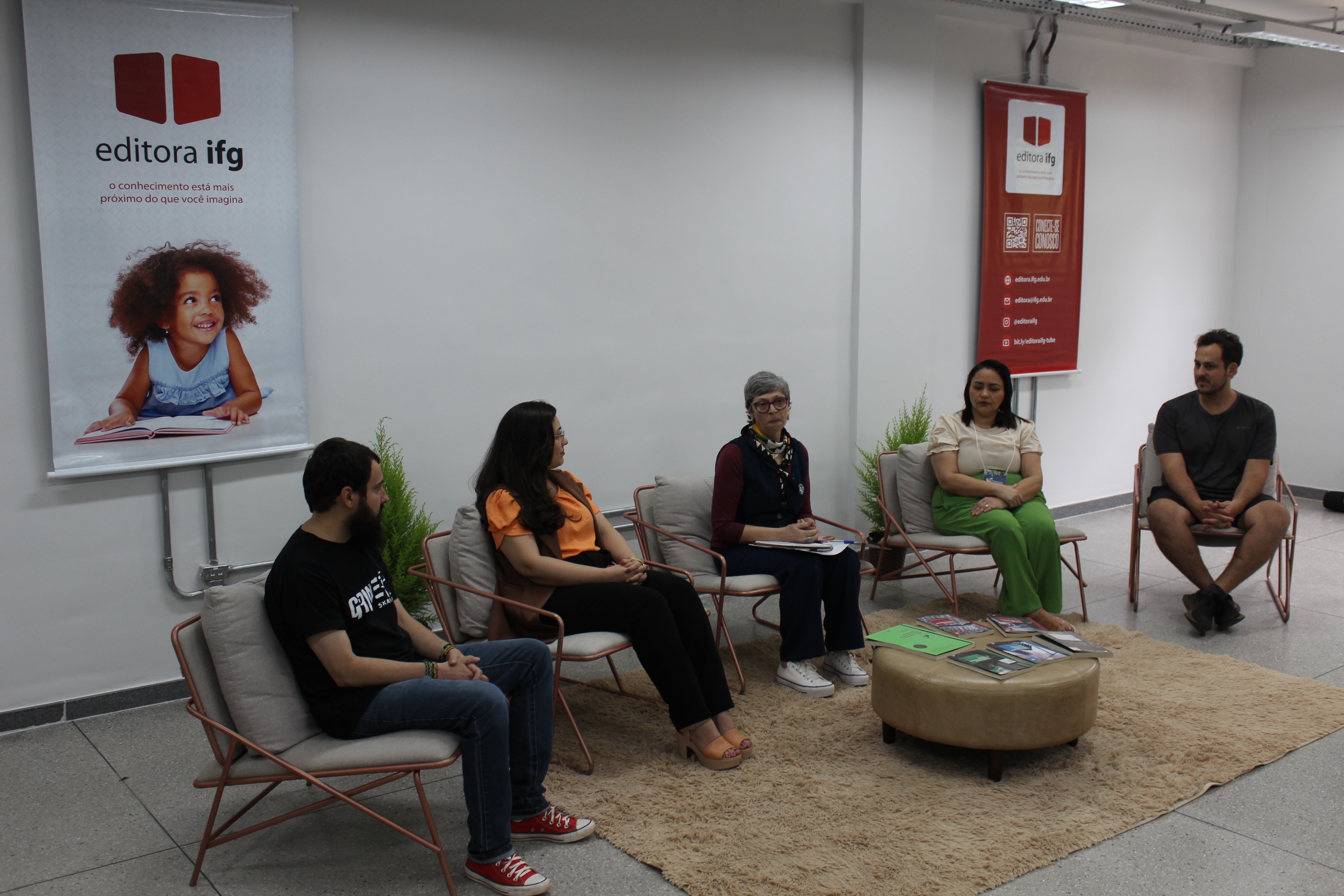 A roda foi mediada pela coordenadora da Editora IFG, a professora Vanderleida Rosa de Freitas e Queiroz. Em sua fala, a gestora ressaltou a importância de aproximar o conhecimento do público e de apresentar à comunidade obras que merecem ser conhecidas e lidas.