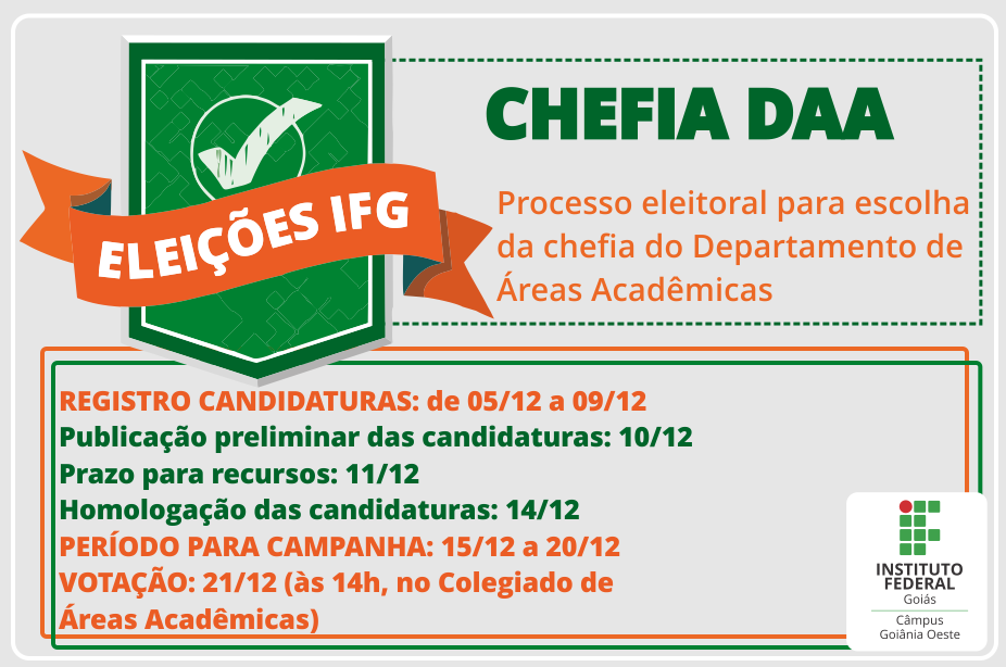 Abertas inscrições para candidaturas à chefia do Departamento de Áreas Acadêmicas do Câmpus Goiânia Oeste