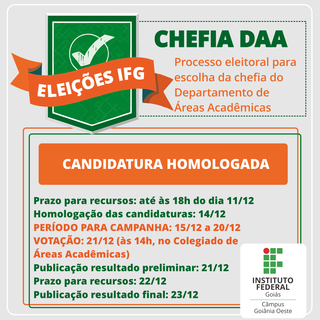Publicada candidatura homologada para eleição da chefia do DAA do Câmpus Goiânia Oeste