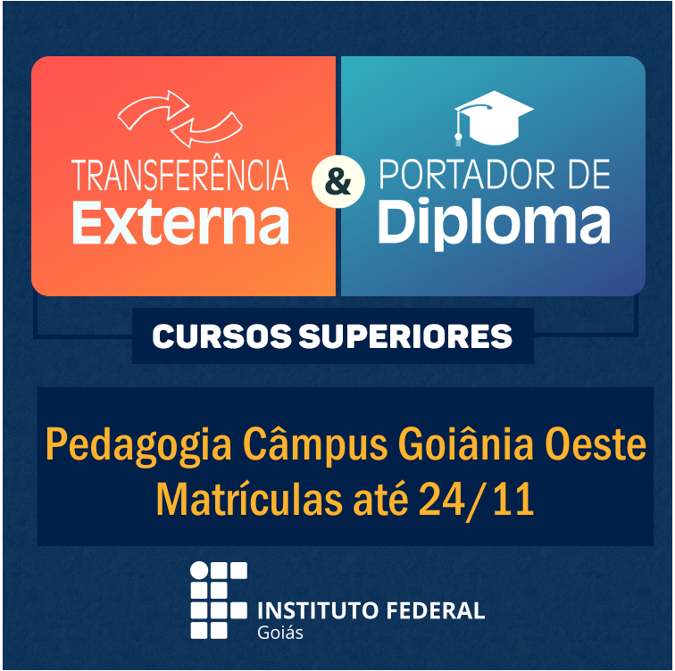 - Candidatos aprovados em Pedagogia no Câmpus Goiânia Oeste têm até amanhã, dia 18, para fazerem matrícula on-line