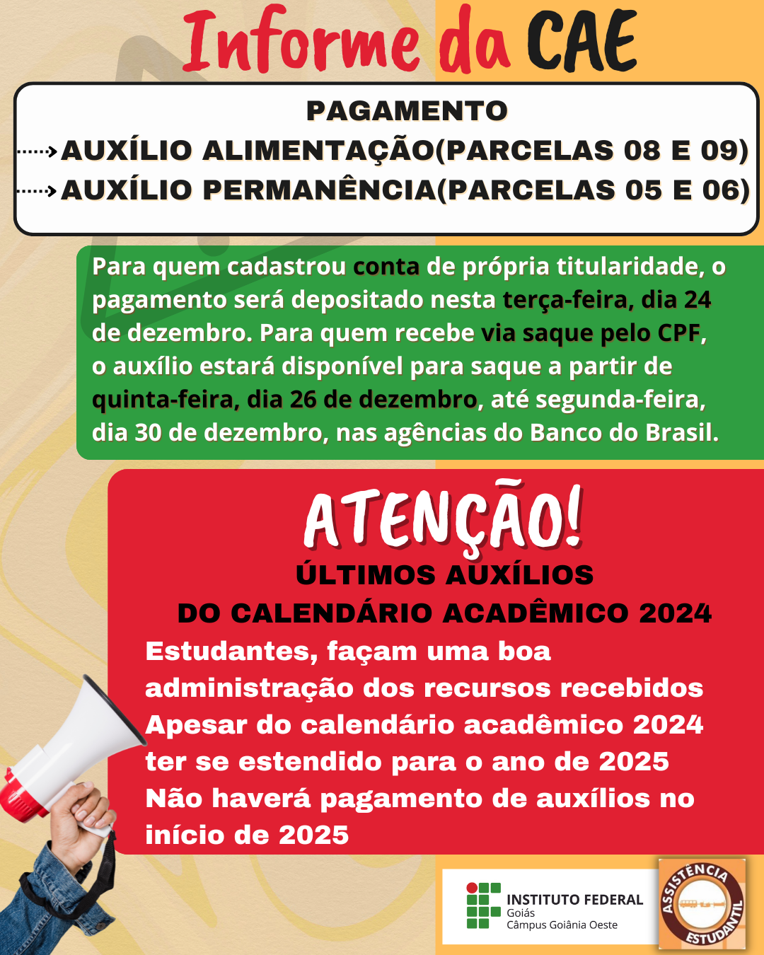 Alunos receberão esta semana os últimos auxílios do calendário de 2024
