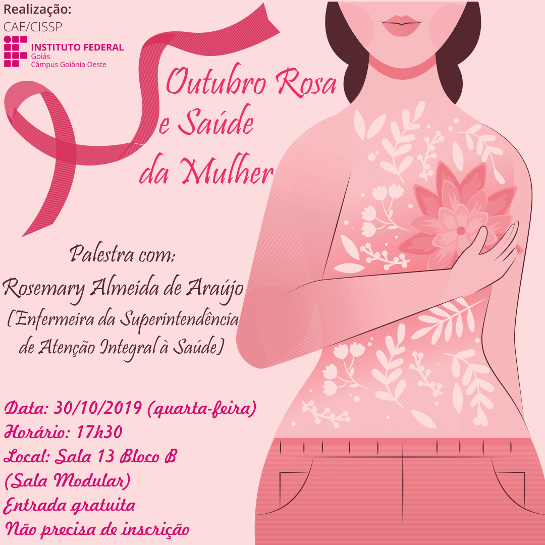 Palestra com a temática Outubro Rosa e Saúde da Mulher acontecerá na próxima quarta, dia 30