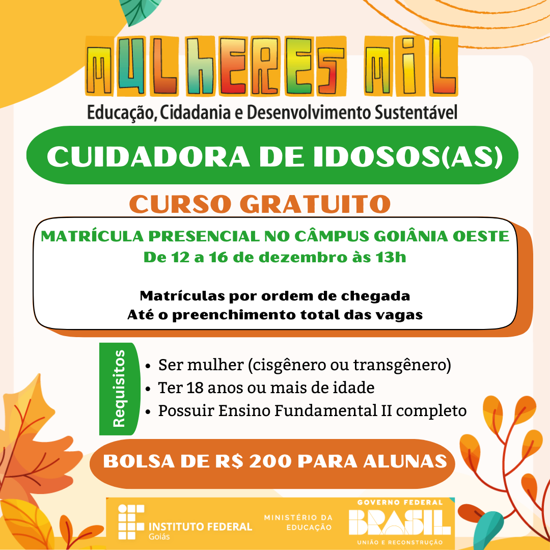 Abertas inscrições de vagas remanescentes  para curso de Cuidadora de Idosos(as) no Câmpus Goiânia Oeste