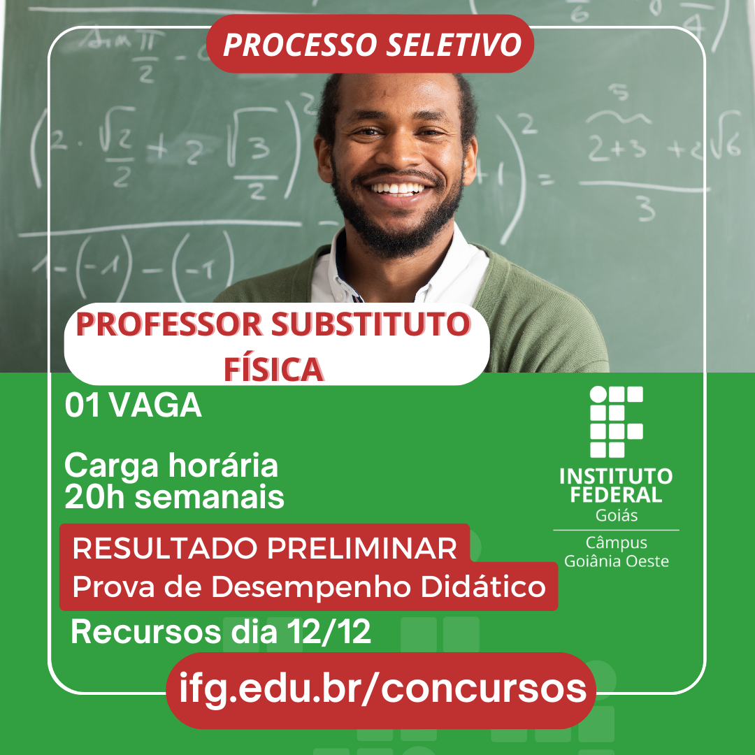 Publicado resultado preliminar da 2ª Etapa do processo seletivo para professor substituto de Física no Câmpus Goiânia Oeste