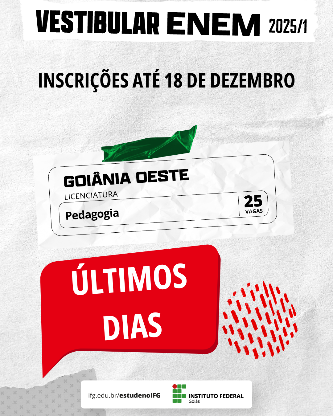 No Câmpus Goiânia Oeste são ofertadas 25 vagas para Pedagogia
