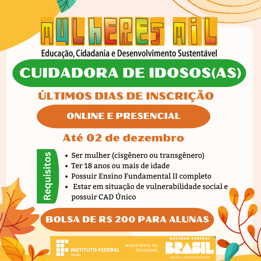 Últimos dias de inscrições para o curso de Cuidadora de Idosos(as) no Câmpus Goiânia Oeste