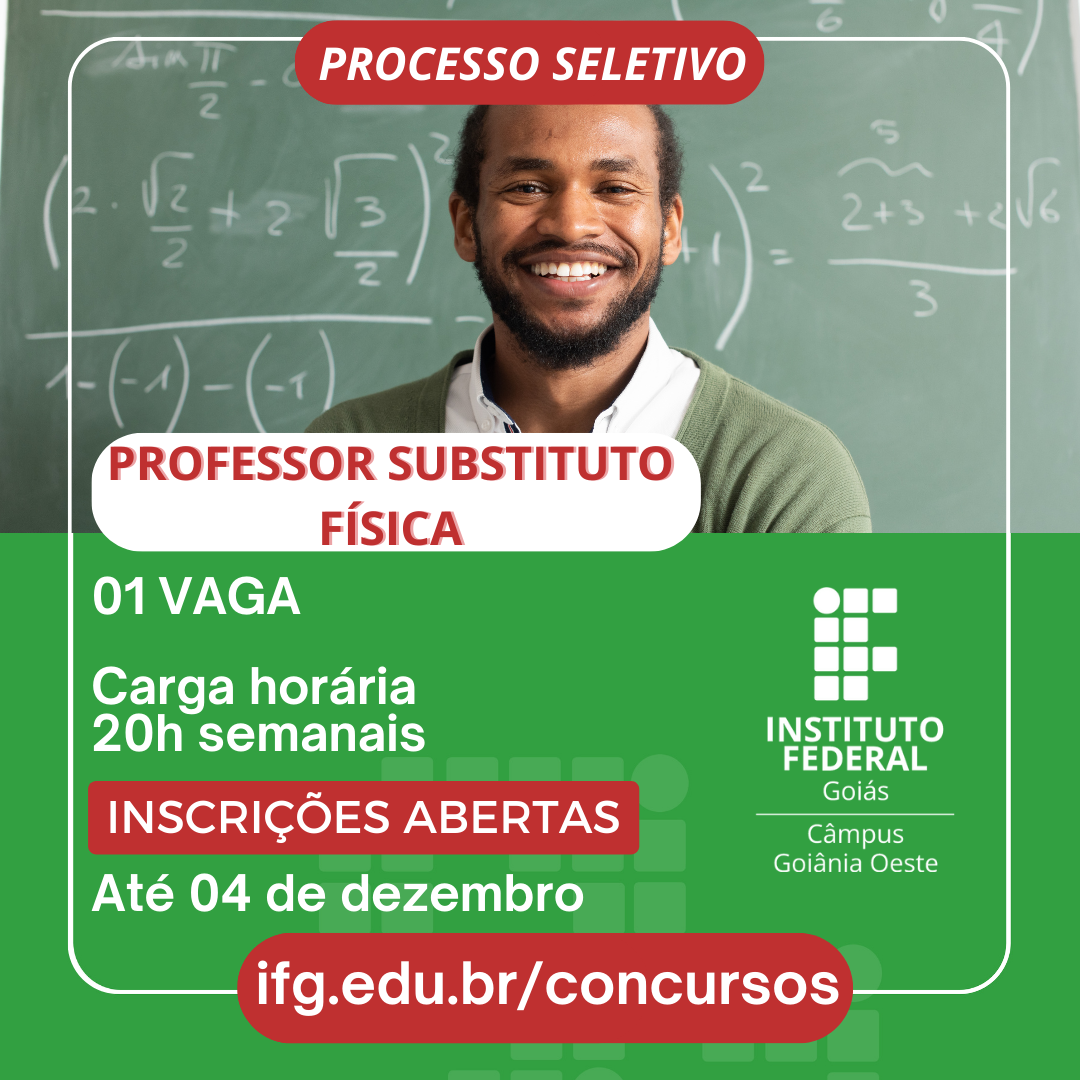 Abertas inscrições para professor substituto de Física no Câmpus Goiânia Oeste