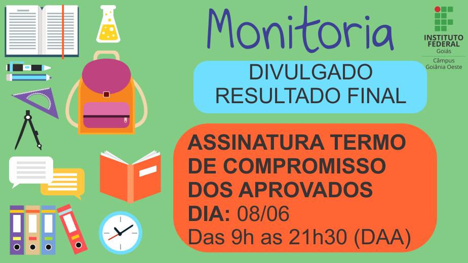 Alunos selecionados como monitores devem assinar termo de compromisso amanhã