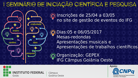 Inscrições deverão ser feitas até o dia 03 de maio no site de gestão de eventos do IFG