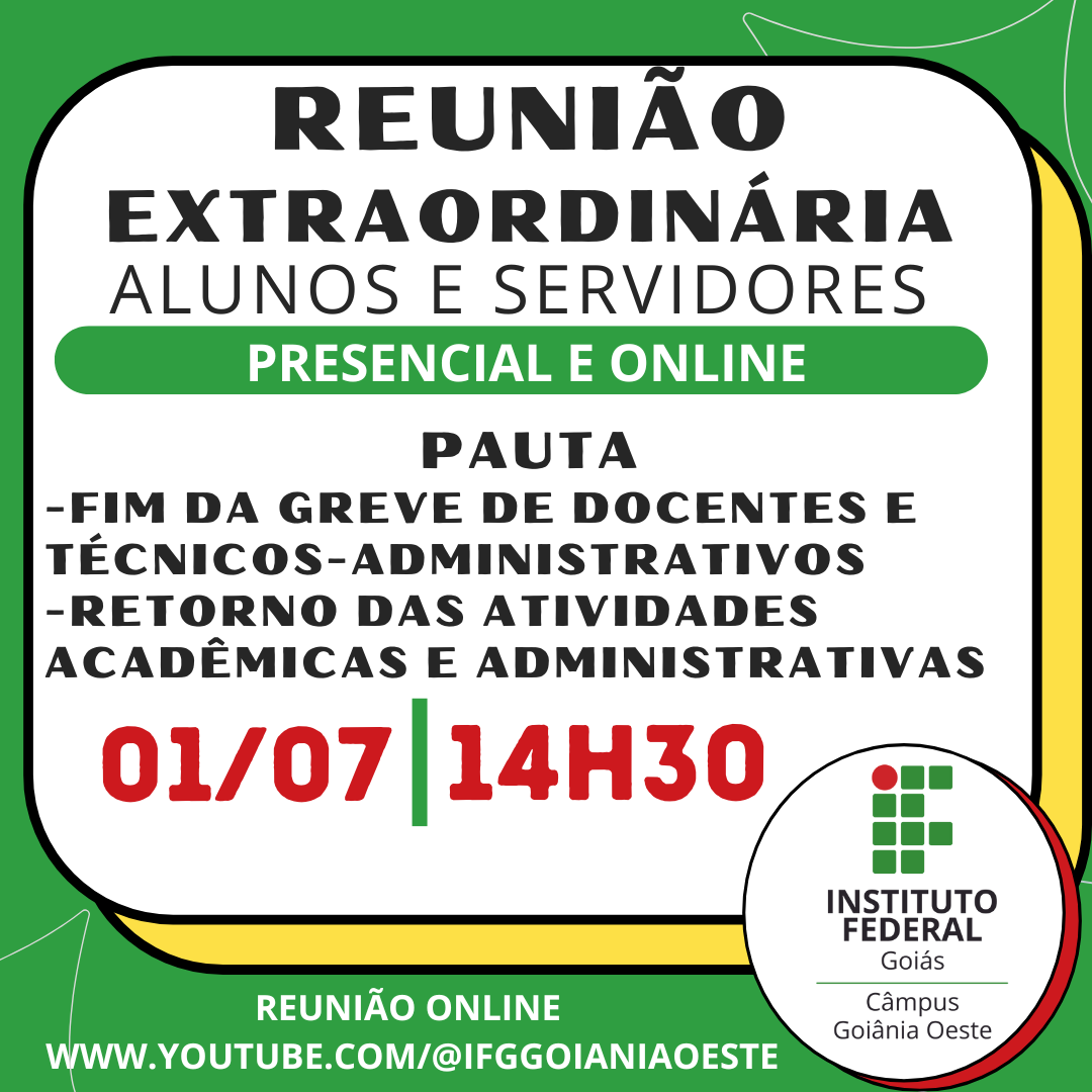 Reunião GERAL Extraordinária para toda a comunidade acadêmica acontecerá nesta segunda, dia 01