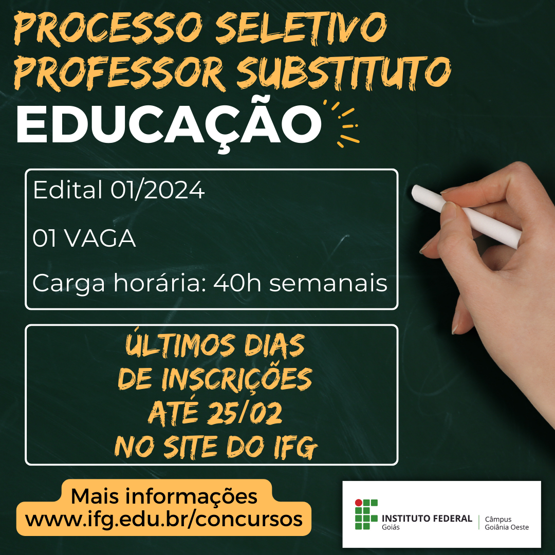 Últimos dias de inscrições para professor substituto de Educação no Câmpus Goiânia Oeste