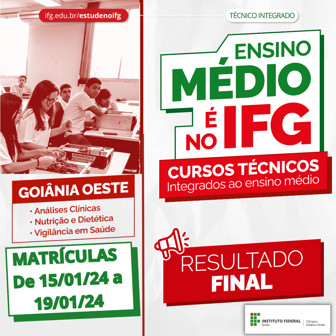 Publicado Edital Complementar de Matrícula do Câmpus Goiânia Oeste
