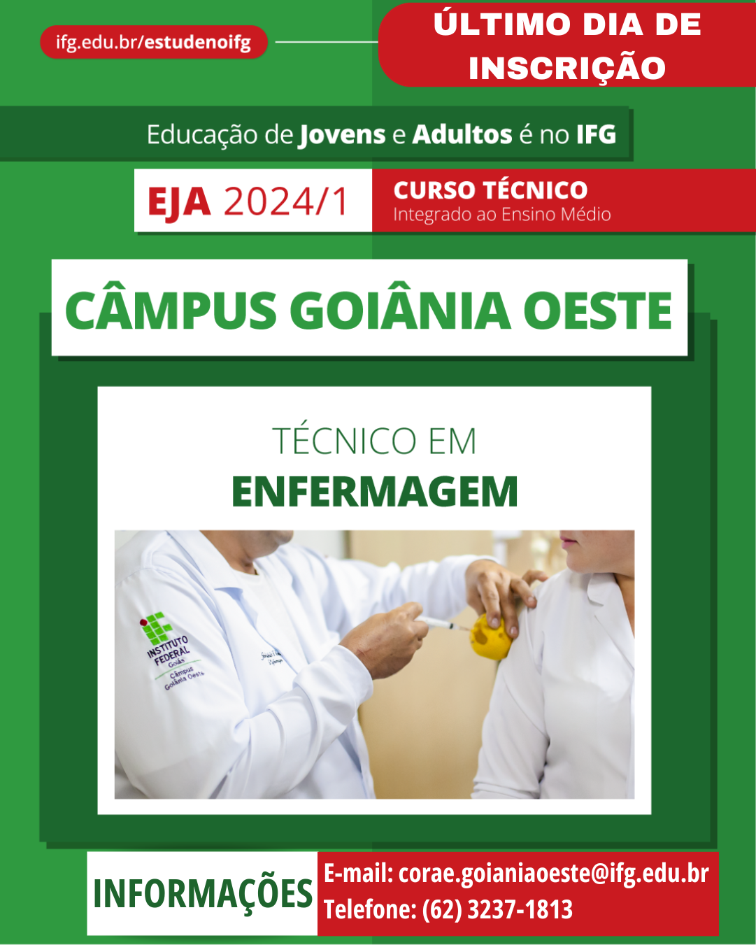 Último dia de inscrições para curso Técnico em Enfermagem no Câmpus Goiânia Oeste