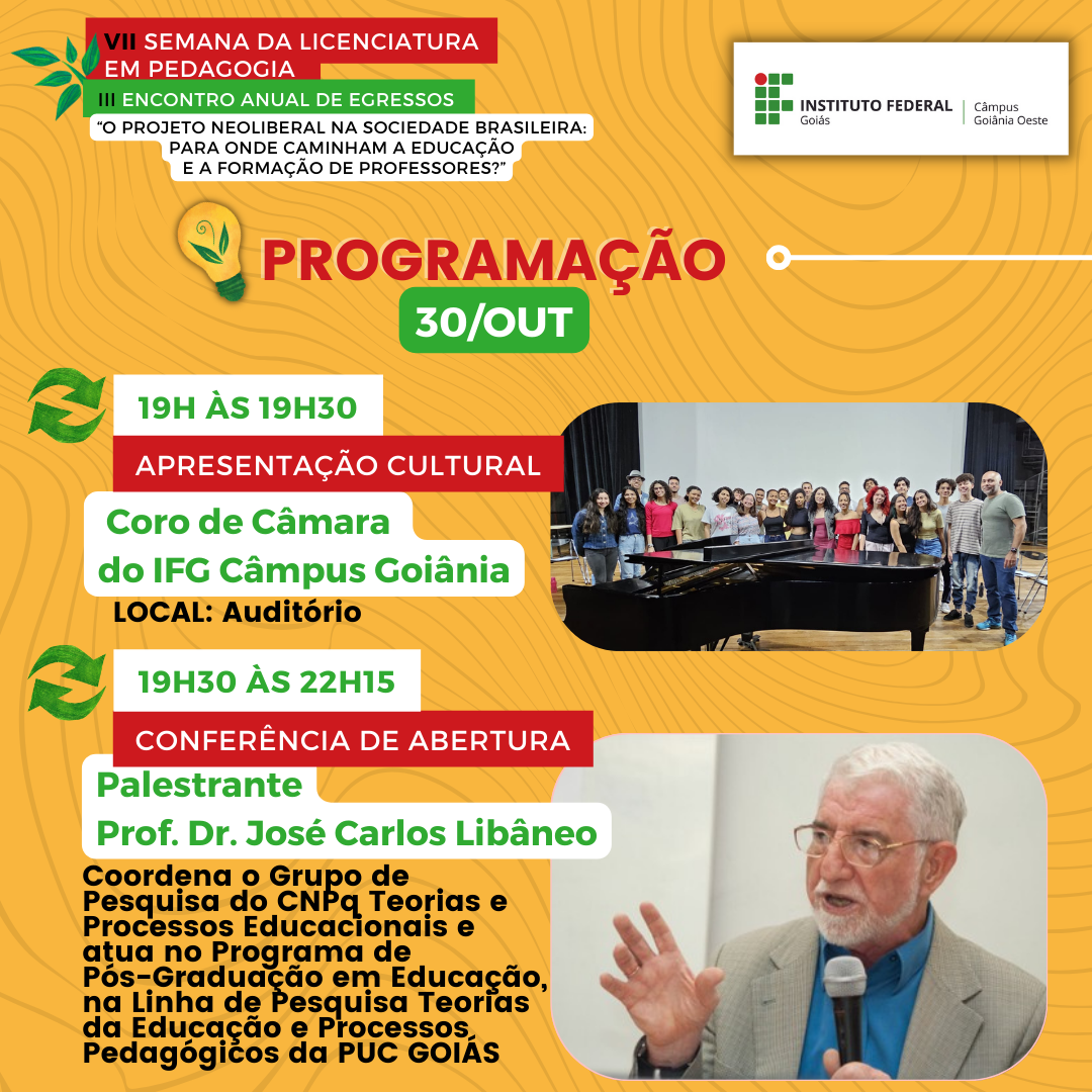 Conferência de abertura com professor José Carlos Libâneo é o destaque da programação desta segunda-feira