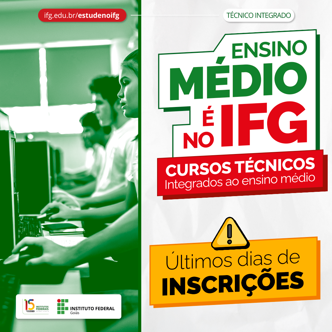 Últimos dias de inscrições para a seleção dos cursos técnicos integrados ao Ensino Médio no IFG
