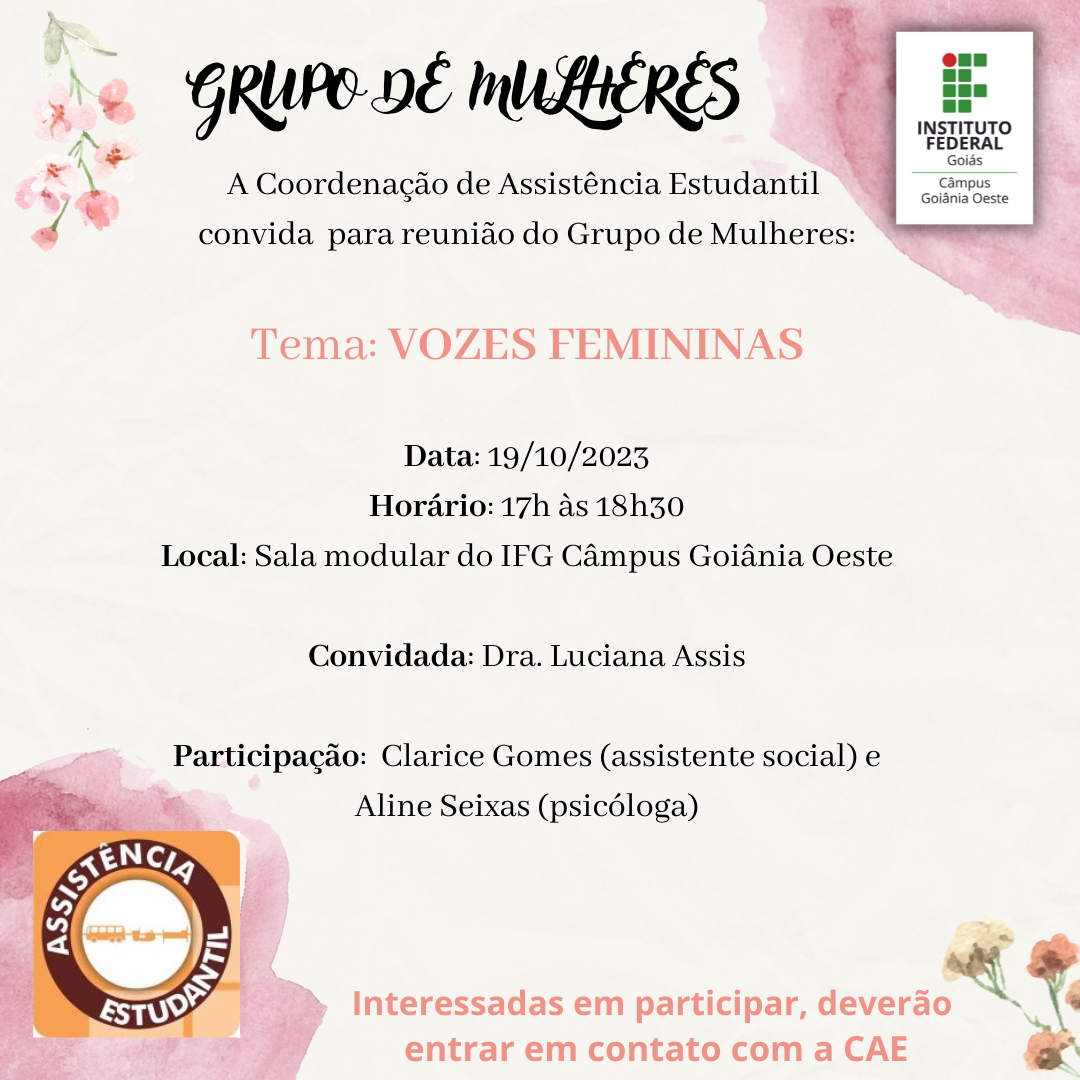 Vozes Femininas é o tema da próxima reunião do Grupo de Mulheres do Câmpus Goiânia Oeste
