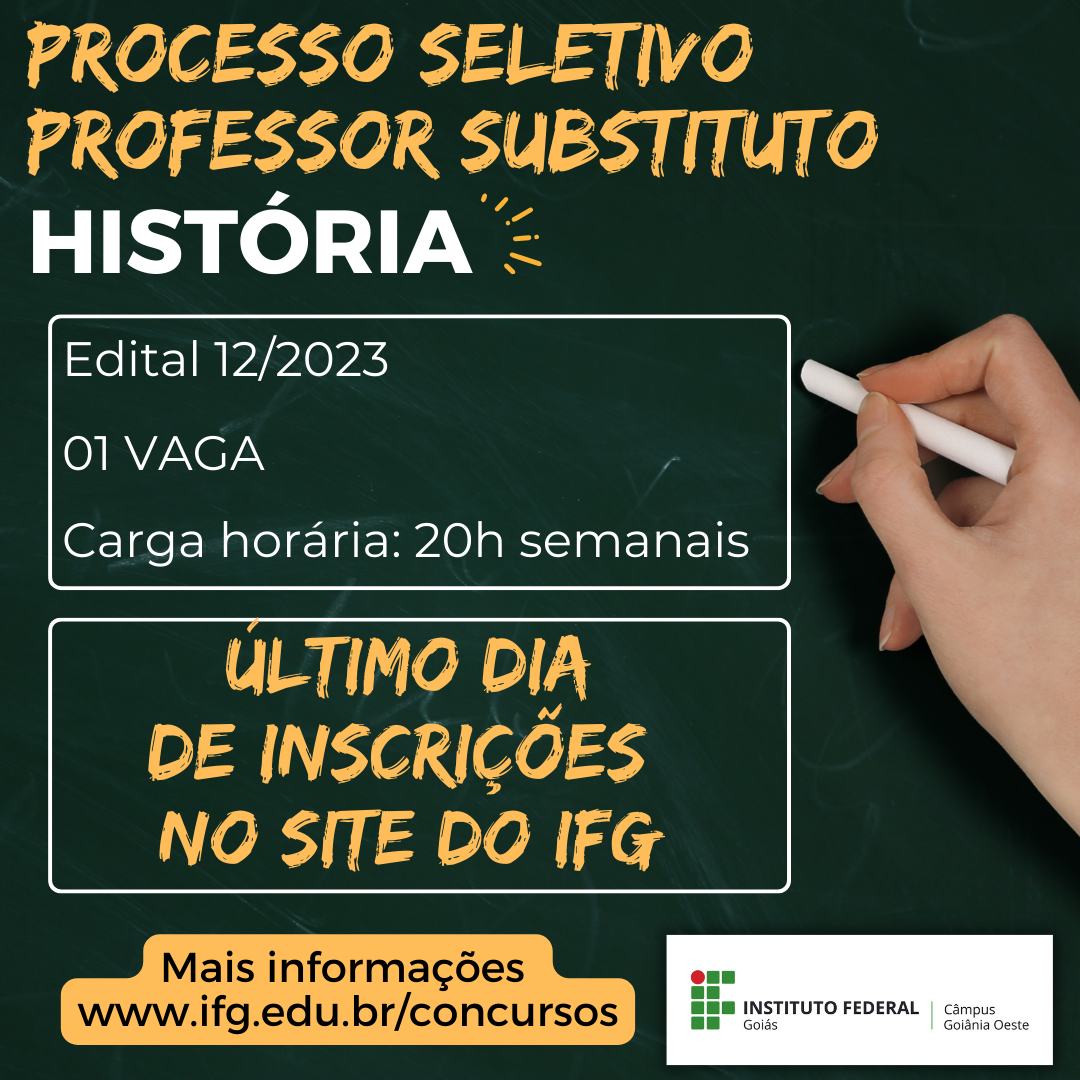 - Estão abertas as inscrições para professor substituto de Educação no Câmpus Goiânia Oeste