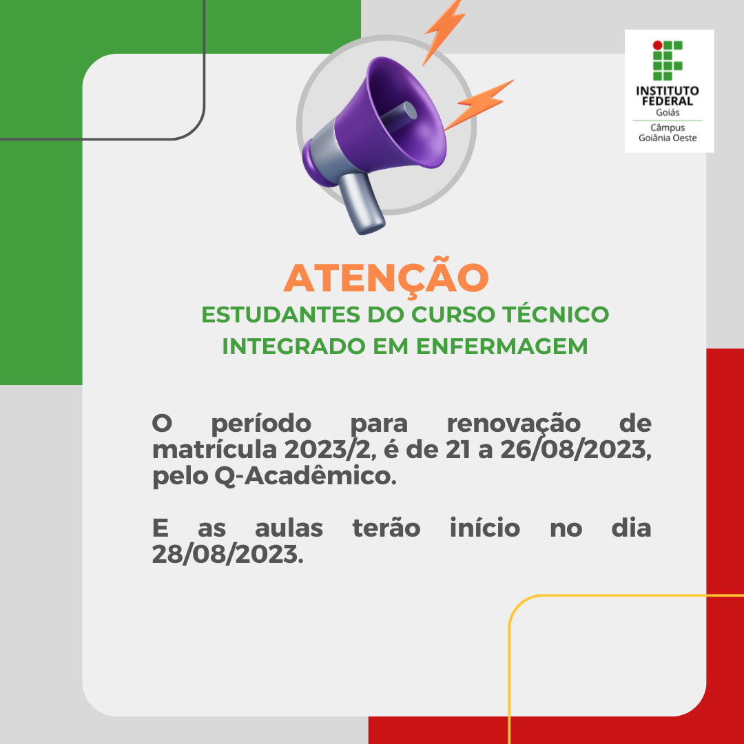 Aberto período para renovação de matrícula dos alunos veteranos do curso Técnico em Enfermagem