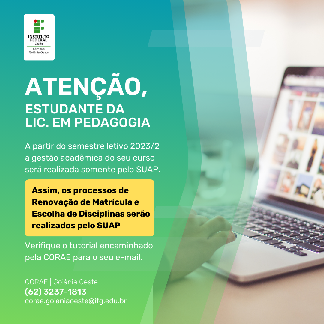 Renovação da matrícula dos estudantes de Pedagogia será no novo módulo SUAP-Ensino