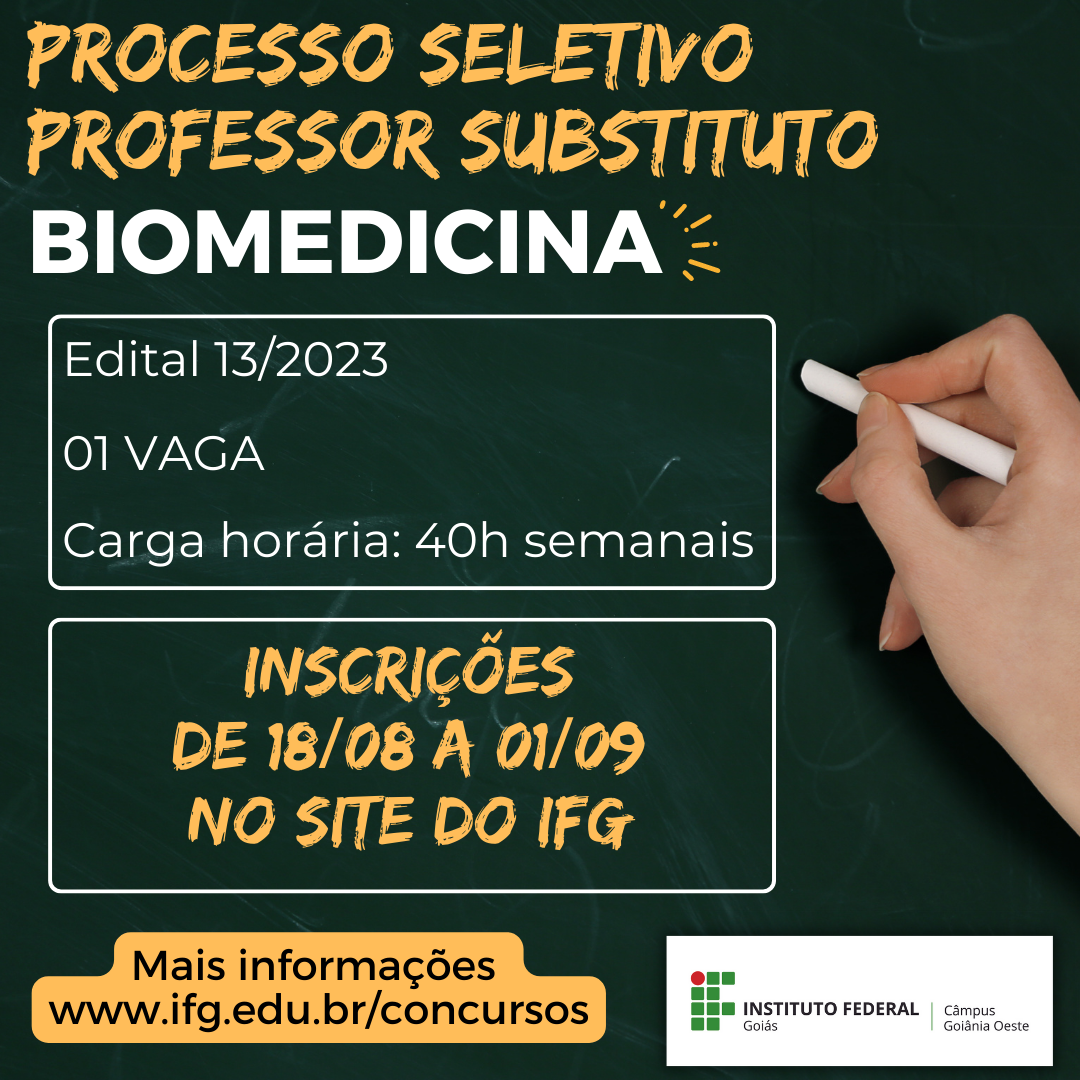 Aberto processo seletivo para professor substituto de Biomedicina no Câmpus Goiânia Oeste
