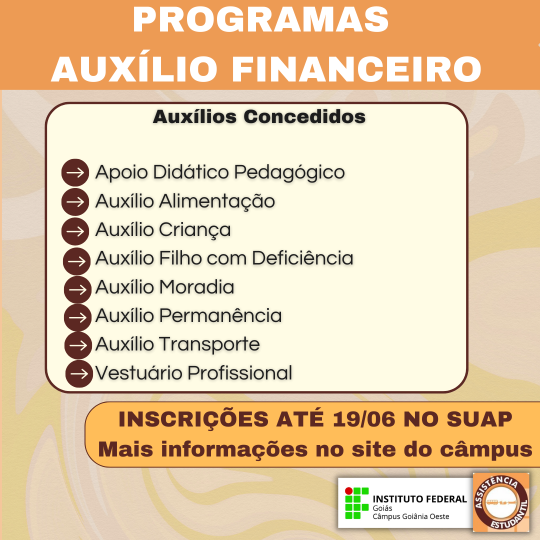 São ofertados oito diferentes auxílios para todos os alunos do câmpus com renda familiar mensal per capita de 1,5 salário mínimo