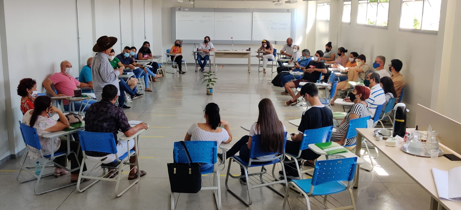 Líderes de movimentos comunitários e equipe do Programa de Extensão Educação, Saúde e Direito à Cidade reúnem-se no câmpus