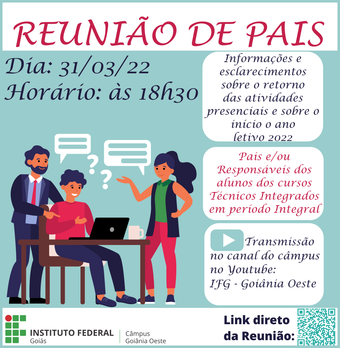 Pais e/ou responsáveis deverão acompanhar a reunião pelo canal do câmpus no Youtube