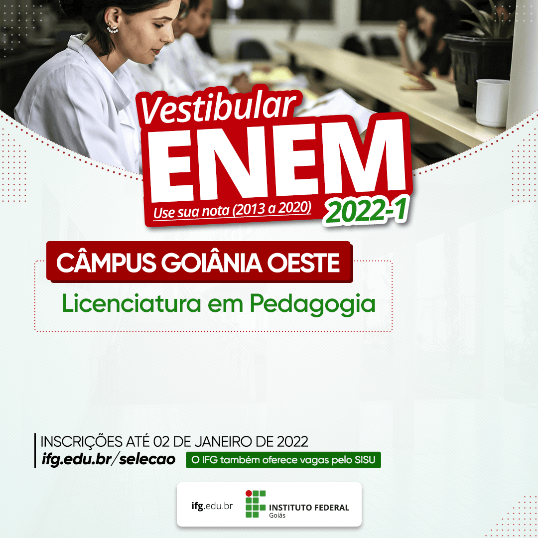 São ofertadas 30 vagas para o curso superior de Licenciatura em Pedagogia no Câmpus Goiânia Oeste