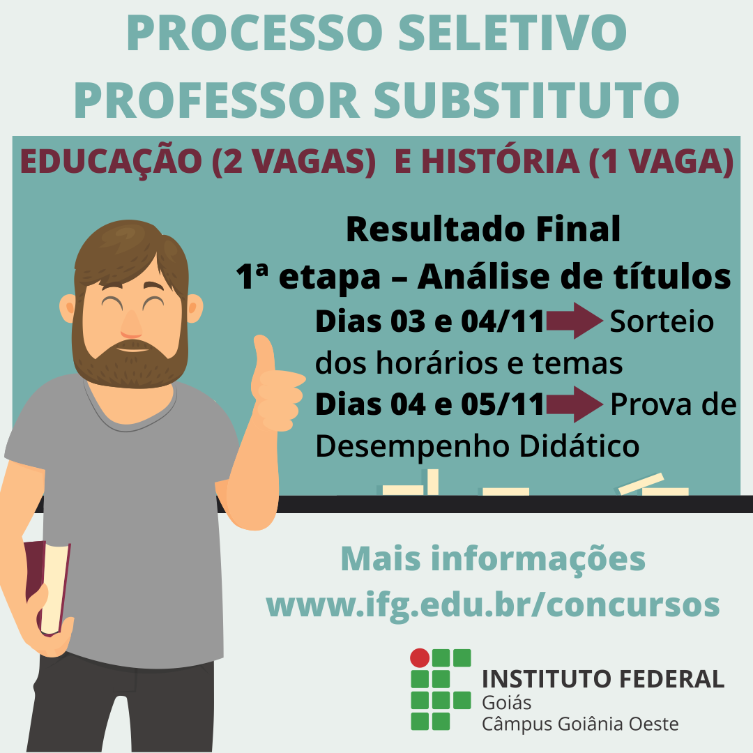 - Divulgado resultado preliminar da 1ª etapa do processo seletivo para professor substituto no Câmpus Goiânia Oeste