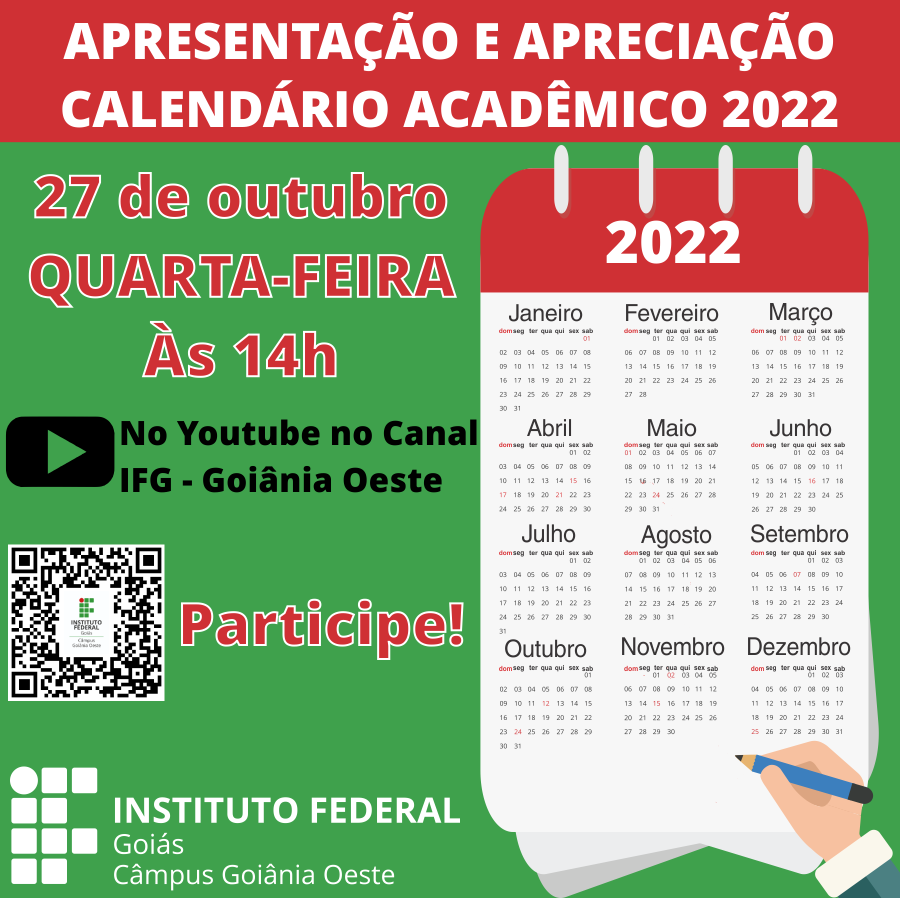 Reunião será transmitida no canal do Câmpus Goiânia Oeste do Youtube