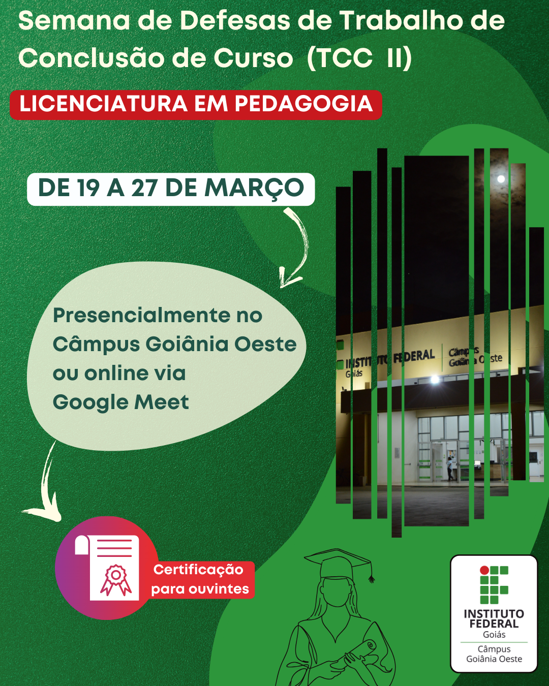 Defesas serão na modalidade presencial ou online. Participação como ouvinte vale horas complementares