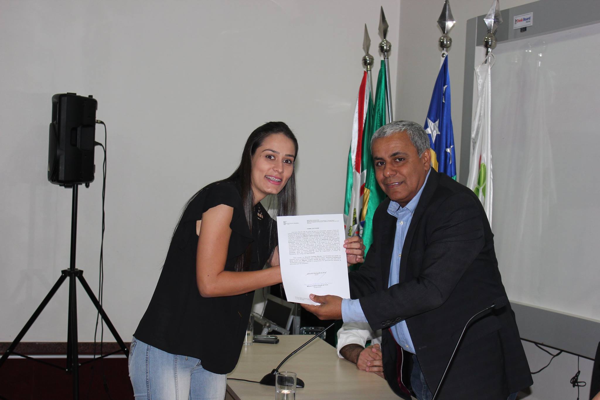 Novos servidores docentes e técnico-administrativos tomaram posse na tarde de ontem, 13, em solenidade realizada no Câmpus Goiânia e presidida pelo reitor Jerônimo Rodrigues da Silva. Todos foram aprovados em concursos públicos e se somaram aos 2.100 servidores da Instituição. Mayara Cristina Gomes de Faria tomou posse para o cargo de Assistente de Laboratório, na Área de Alimentos, no IFG-Câmpus Inhumas.