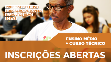 Estão abertas, a partir desta quarta-feira, 31, as inscrições para os cursos técnicos integrados ao Ensino Médio, na modalidade de Educação de Jovens e Adultos (EJA) 2017/2....