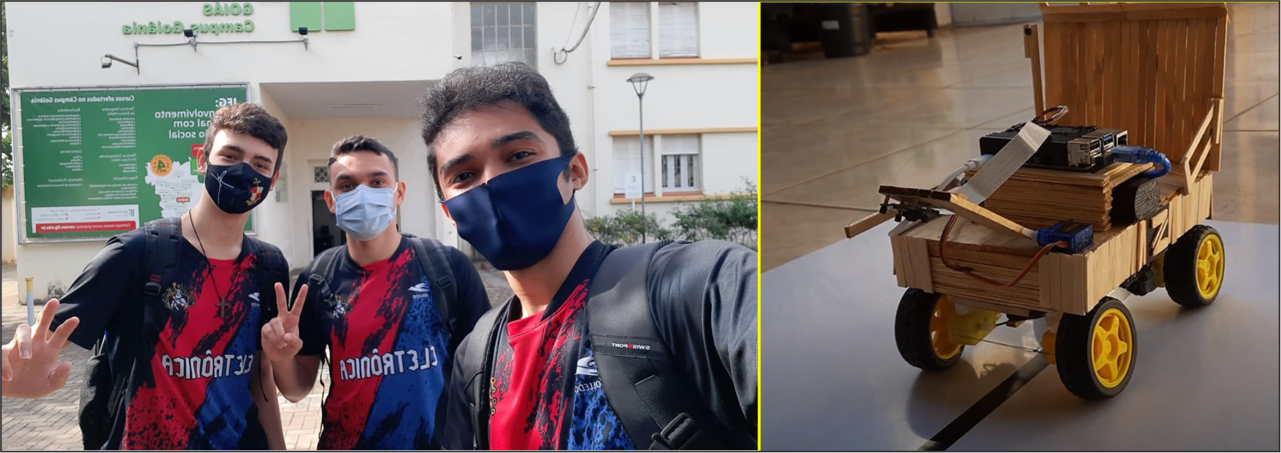 Estudantes do 3º ano do Curso Técnico Integrado em Eletrônica do Câmpus Goiânia do Instituto Federal de Goiás (IFG) faturaram a medalha de prata na modalidade Prática Virtual Apresentação - Inovação da Olimpíada Brasileira de Robótica (OBR). A competição nacional ocorreu entre os dias 11 e 15 de outubro, e contou com mais de 163 mil estudantes em diversas disputas. A cerimônia virtual de premiação ocorreu no último sábado (16), no canal do YouTube da OBR.