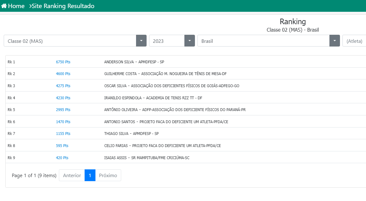 Ranking Paralímpico da CBTM