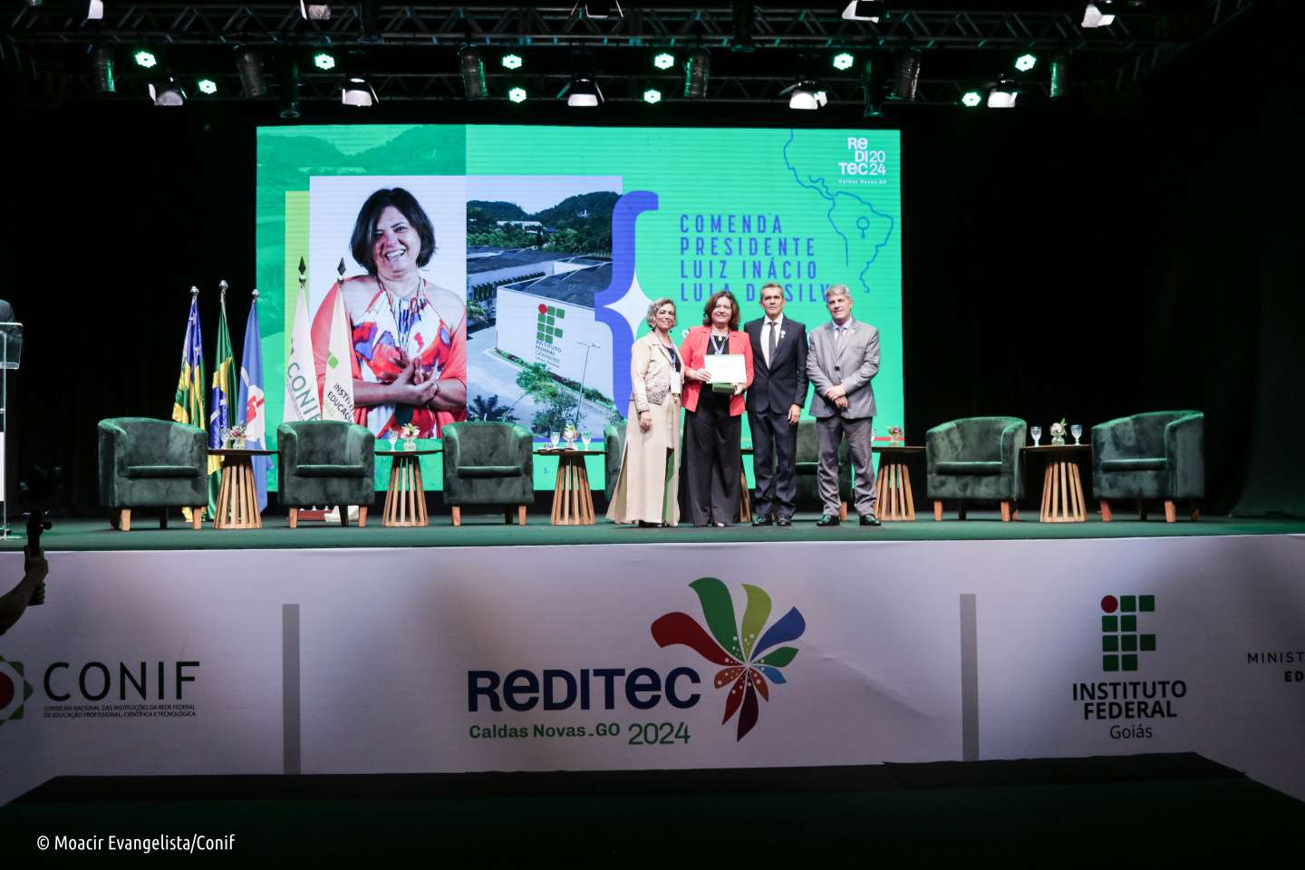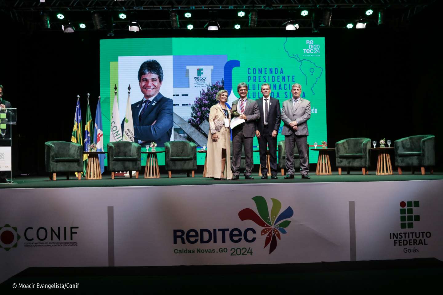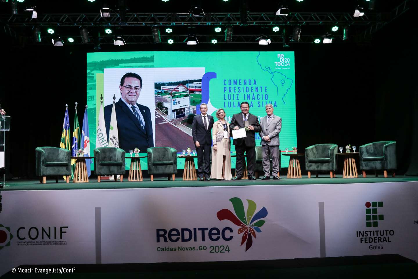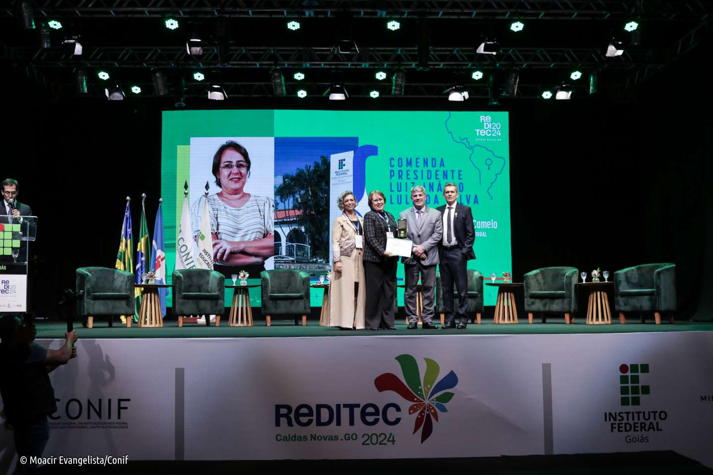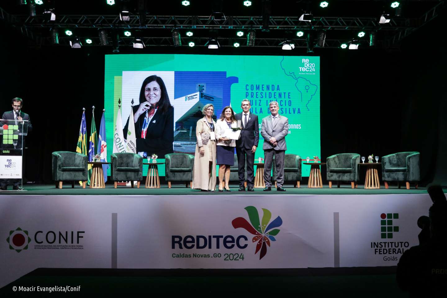 A abertura da 48ª Reunião Anual dos Dirigentes das Instituições de Educação Profissional e Tecnológica (Reditec), realizada em Caldas Novas (GO), na noite dessa segunda-feira (21/10), ficou marcada por emoção e recordações: como parte deste momento, houve a entrega da Comenda Presidente Luiz Inácio Lula da Silva às pessoas que se destacaram pela sua contribuição à Rede Federal.