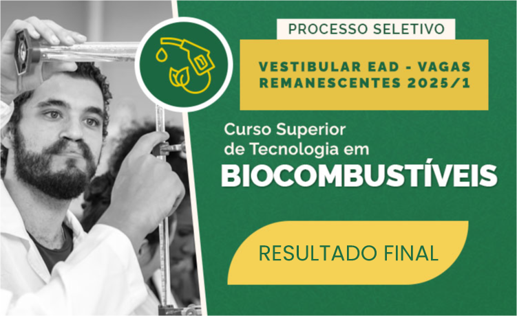 Foi divulgado também o resultado do Vestibular EaD de vagas remanescentes do curso de Tecnologia em Biocombustíveis